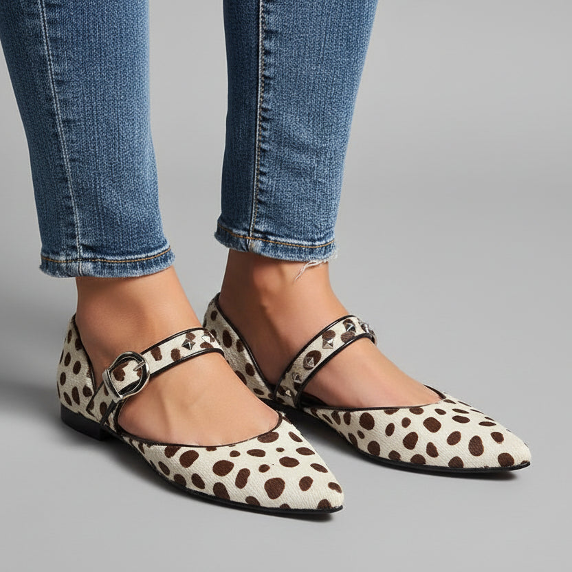 Estilo: Moderno · Elegante · Urbano. Tipo: Bailarinas con correas. Material: Material sintético con estampado animal. Cierre: Correas con hebilla ajustable. Uso recomendado: Diario · Oficina · Salidas informales. Temporada: Primavera · Verano · Entretiempo.