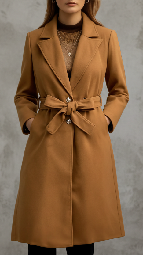Porque es un abrigo que interpreta la elegancia clásica con una sensibilidad moderna. Su estructura limpia y el cinturón en la cintura aportan orden y sofisticación, creando una silueta favorecedora sin esfuerzo.