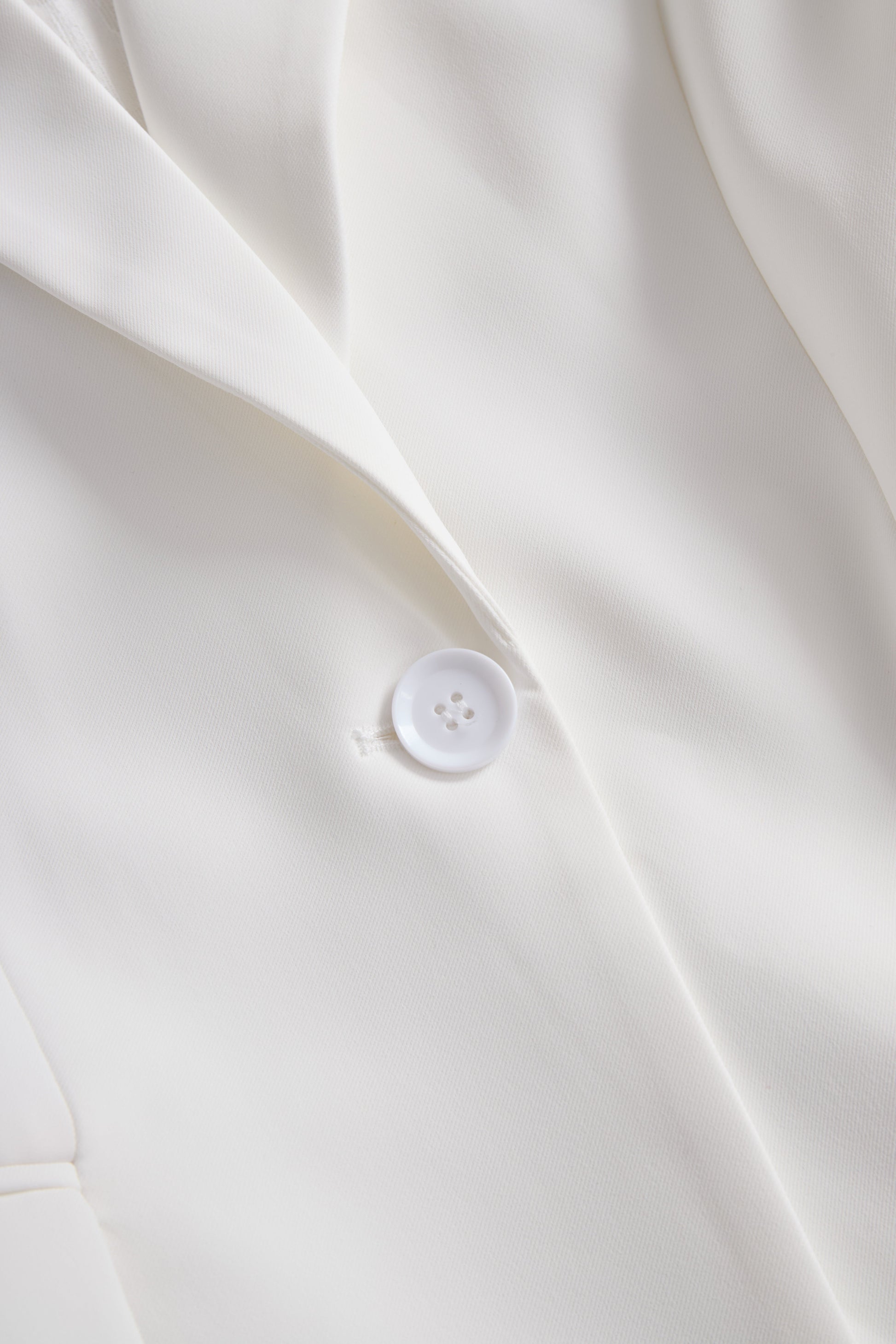 Porque es el blazer que sorprende con un detalle inesperado sin perder elegancia. Su frontal limpio y estructurado mantiene la esencia clásica de la sastrería, mientras que el panel de encaje en la espalda aporta un toque femenino y distintivo que marca la diferencia.