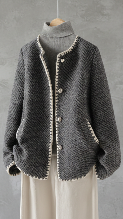 El Cárdigan Élena combina elegancia clásica y confort térmico en una prenda sofisticada y versátil. Su tejido de punto estructurado ofrece una textura rica y un acabado premium, mientras que el diseño con botones frontales y silueta equilibrada aporta un estilo refinado y atemporal. Ligero pero cálido, es ideal para aportar un toque elegante sin renunciar a la comodidad.