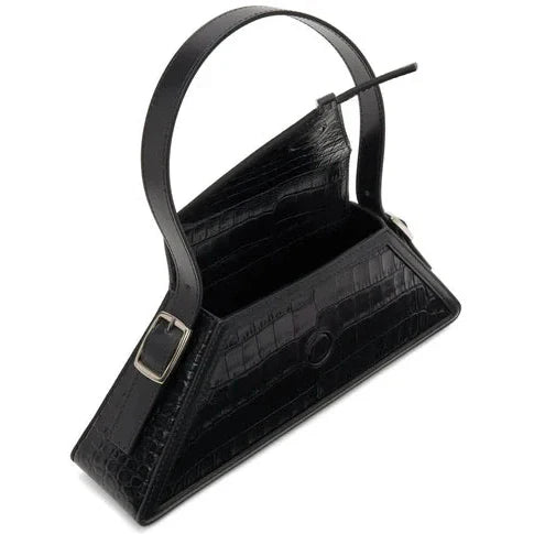 Bolso de diseño arquitectónico que destaca por su silueta geométrica y su estética vanguardista. Su estructura rígida y sus líneas definidas crean una pieza moderna y sofisticada que transforma cualquier look en una declaración de estilo. Ligero y funcional, ofrece el espacio justo para los esenciales, mientras que su asa superior permite llevarlo cómodamente en mano o al hombro. Un accesorio único para quienes buscan elegancia con personalidad.