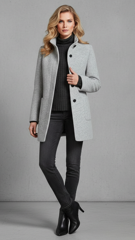 Cuello alto elegante: protege del frío y del viento con un acabado refinado y femenino.