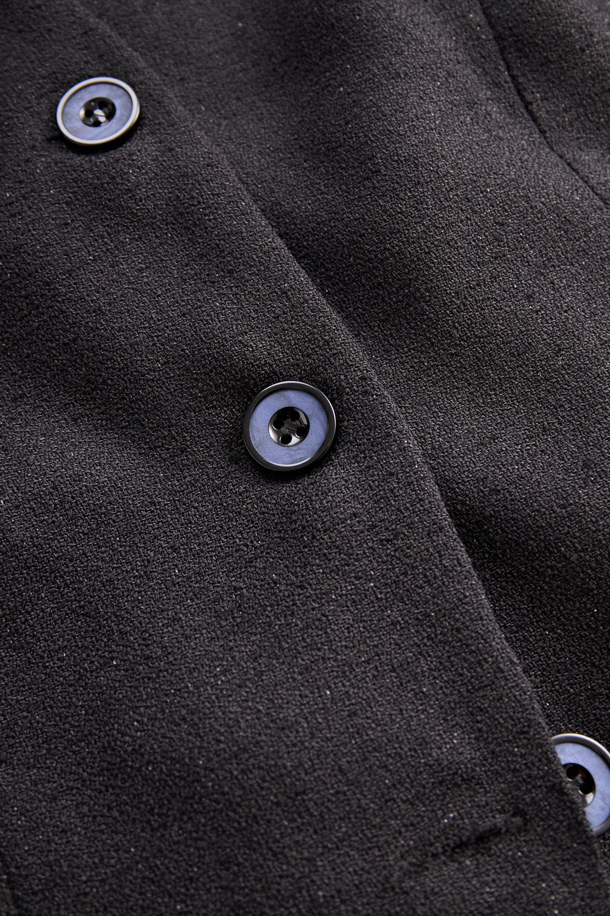 Chaleco con botones de perla: Detalle sofisticado que eleva el conjunto con delicadeza.